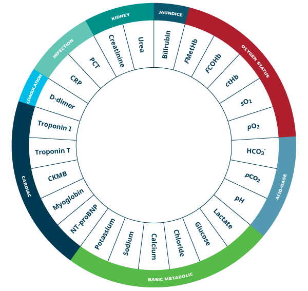 Bovenop 19 kritieke bloedgasparameters en 9 biomarkers biedt Radiometer een portfolio aan analysers voor bloedonderzoek, transcutane monitors en een point-of-care IT-oplossing die bloedafname en gegevensregistratie automatiseert en vereenvoudigt. Met: