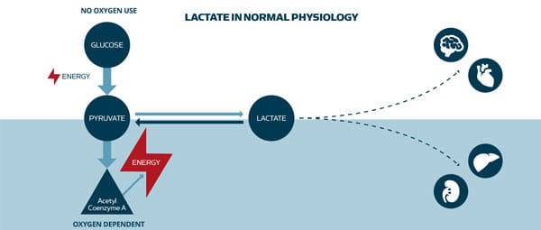 De normale concentratie lactaat is ongeveer 0,6-1,4 mmol/L [9] en de niveaus nemen toe bij biologische stress. Hyperlactatemie is vaak een indicator van weefselhypoxie, zoals waarneembaar bij patiënten met sepsis, maar kan ook aanwezig zijn bij patiënten met diabetes, leverziekte, tumoren, intoxicatie of aangeboren stofwisselingsstoornissen [8,10].