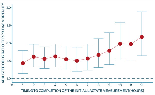 Vroege lactaatmeting wordt in verband gebracht met verminderde sterfte en betere resultaten bij septische patiënten, met een specifiek voordeel dat wordt waargenomen wanneer de eerste metingen